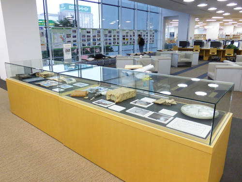 いわき市立いわき総合図書館(LATOV:いわき駅前再開発ビル内)にて、平成27年5月まで半年間の展示です。 多くの方にお立ち寄りいただければ幸いです。